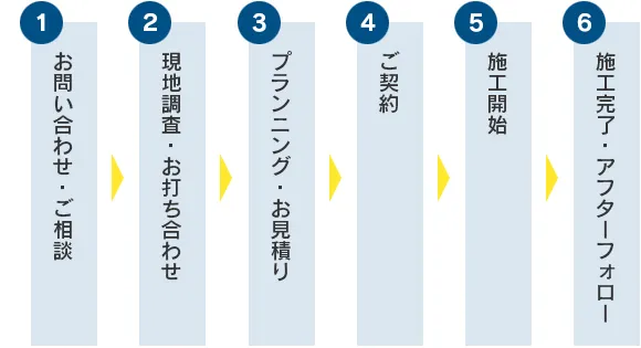当社では、現地調査とお打ち合わせを踏まえて、お客様とのご相談を重ねながら、プランを検討していきます。ご納得いただけるまで、ご質問やご要望などがございましたら、ご遠慮なくお申し付けください。